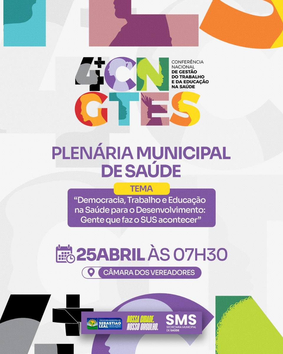 Venha participar da Plenária da 4ª Conferência Nacional de Gestão do Trabalho e da Educação na Saúde (CNGTES) dia 25 na Câmara dos Vereadores! ð Com o tema “Democracia, Trabalho e Educação na Saúde para o Desenvolvimento: Gente que faz o SUS acontecer”, vamos valorizar quem constrói o Sistema Único de Saúde.