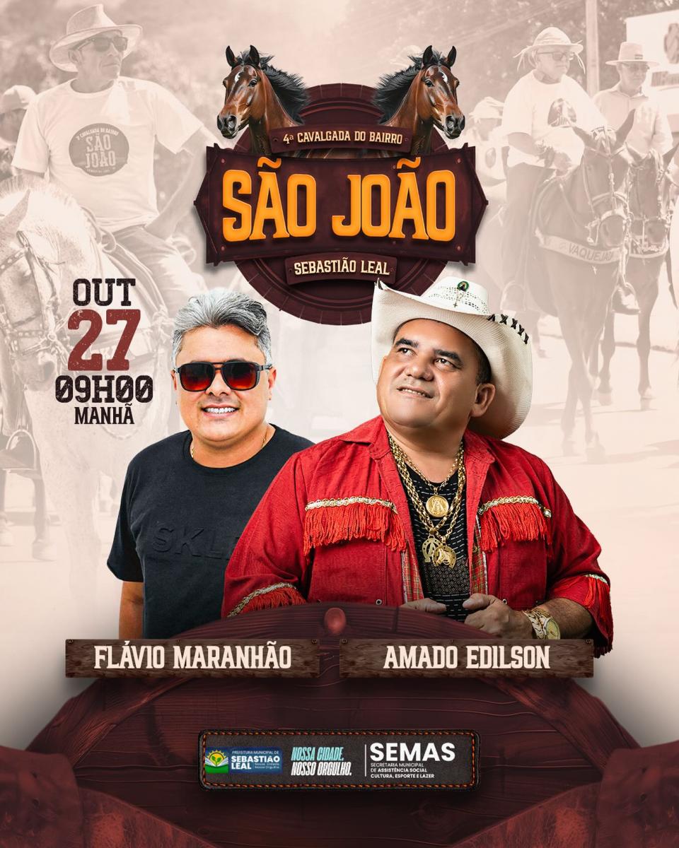 Tradicional e cada vez mais forte! A Cavalgada do Bairro São João chega à sua 4ª edição em Sebastião Leal, reunindo famílias, amigos e apaixonados pela nossa cultura.