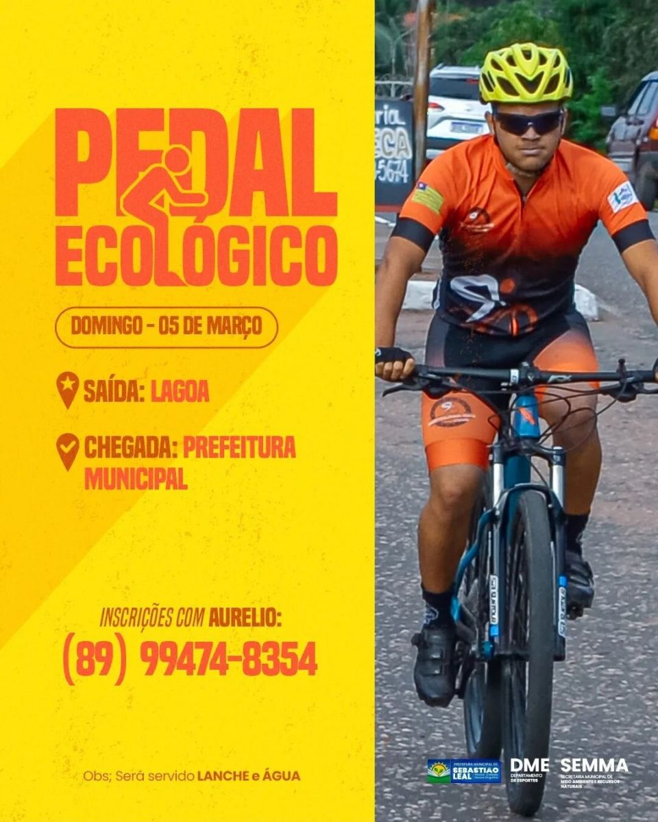 A secretária de Meio Ambiente e do Deparatamento de Esporte e Lazer por meio da Prefeitura Municipal de Sebastião Leal e em parceria promovera o Pedal Ecológico.